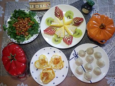今天的早餐小笼包、荷包蛋、枸杞白粥、烤箱版花生米、水果。002017-12-31 12:14