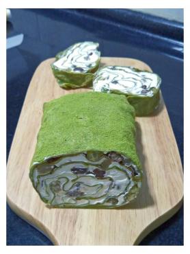 蜜豆抹茶毛巾卷,抹茶融合了奶油的甜腻,卷起来还是很漂亮的。012017-12-14 23:33