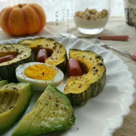 今日小学生早餐:红薯粥,厨友投食的烧卖,糯米蟹肉圆,水煮蛋,青椒白玉菇,红心柚。002017-11-16 07:32