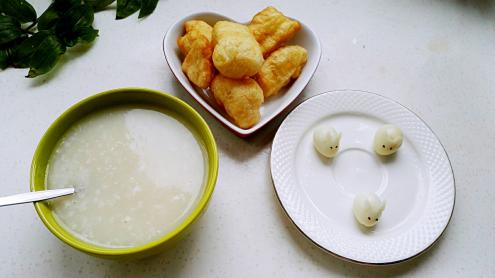 #无华家的粗茶淡饭# 早餐:买的油条、大米稀饭、鹌鹑蛋做的小白兔002017-08-31 09:11