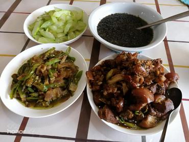 今天的午餐,红烧猪脚,炒西葫芦,紫菜汤,五花肉炒青椒。002017-07-22 12:46