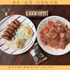#细蚊家的早餐#蕃茄鸡肉拌薯粉,肠仔蛋,葡萄干002017-05-16 07:23