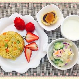 #早餐# 咖喱炒饭、土豆泥蔬菜沙拉、牛奶、蛋黄酥、草莓#365天,早餐不重样# [爱心]MM...002017-04-14 08:30