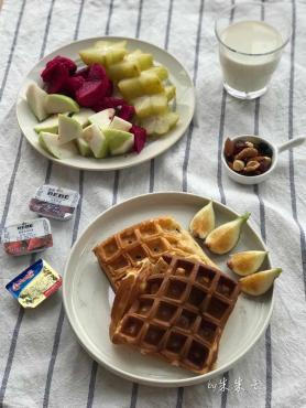 20190903牛奶+华夫饼+无花果杨桃红心火龙果芭乐+综合坚果+果酱。华夫饼模总是控制不好...002019-09-03 15:01