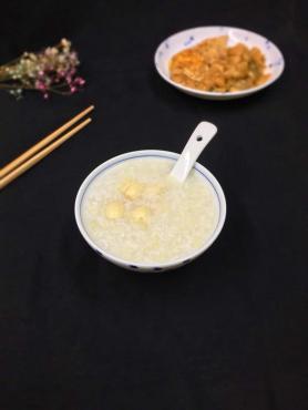 早上好 #早餐#(莲子粥、荷包蛋、榨菜、芒果、百香果汁)002018-11-28 08:06