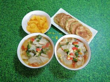 蔬菜烩面片+萝卜丝虾皮鸡蛋饼+橙子002018-11-23 22:00
