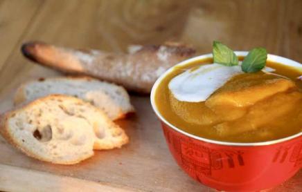 南瓜与胡萝卜煮熟,搅拌机搅糊,入少许盐➕黑胡椒粉 传统法棍面包含黑麦,外脆内软,...002018-08-13 07:22