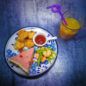牛油果火腿三明治、煎鸡块,芦笋虾仁、鲜橙汁、匈牙利牛肉饭002018-08-10 08:35