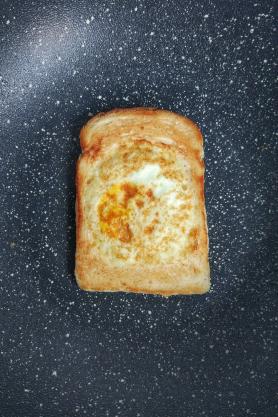 吐司片中间压个洞,不粘锅抹层油,放吐司片,在中间打个鸡蛋,煎熟002018-07-19 22:38
