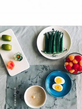 排骨干贝莲子粥,菠菜馒头(昨天做菠菜面条剩下点菠菜汁),水煮蛋,白灼秋葵,西瓜哈密...002018-07-13 07:01