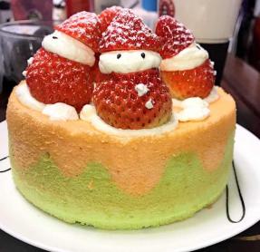 渐变色的戚风蛋糕上坐着圣诞老人们,蛋糕也似乎有了生命。002018-06-23 10:07