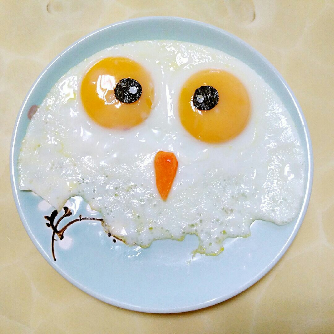 戚风蛋糕(切蛋糕是硬伤[撇嘴]),猫头鹰煎蛋,菠萝和自制酸奶