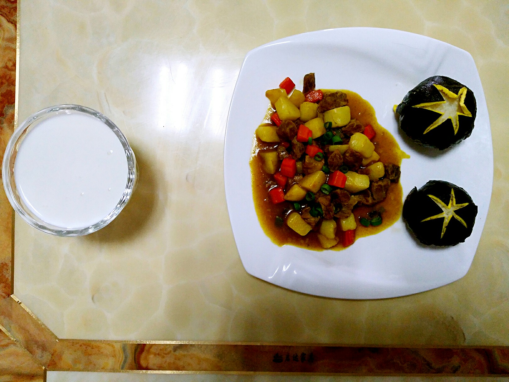香菇饭团子,咖喱牛肉土豆,自制酸奶[微笑]