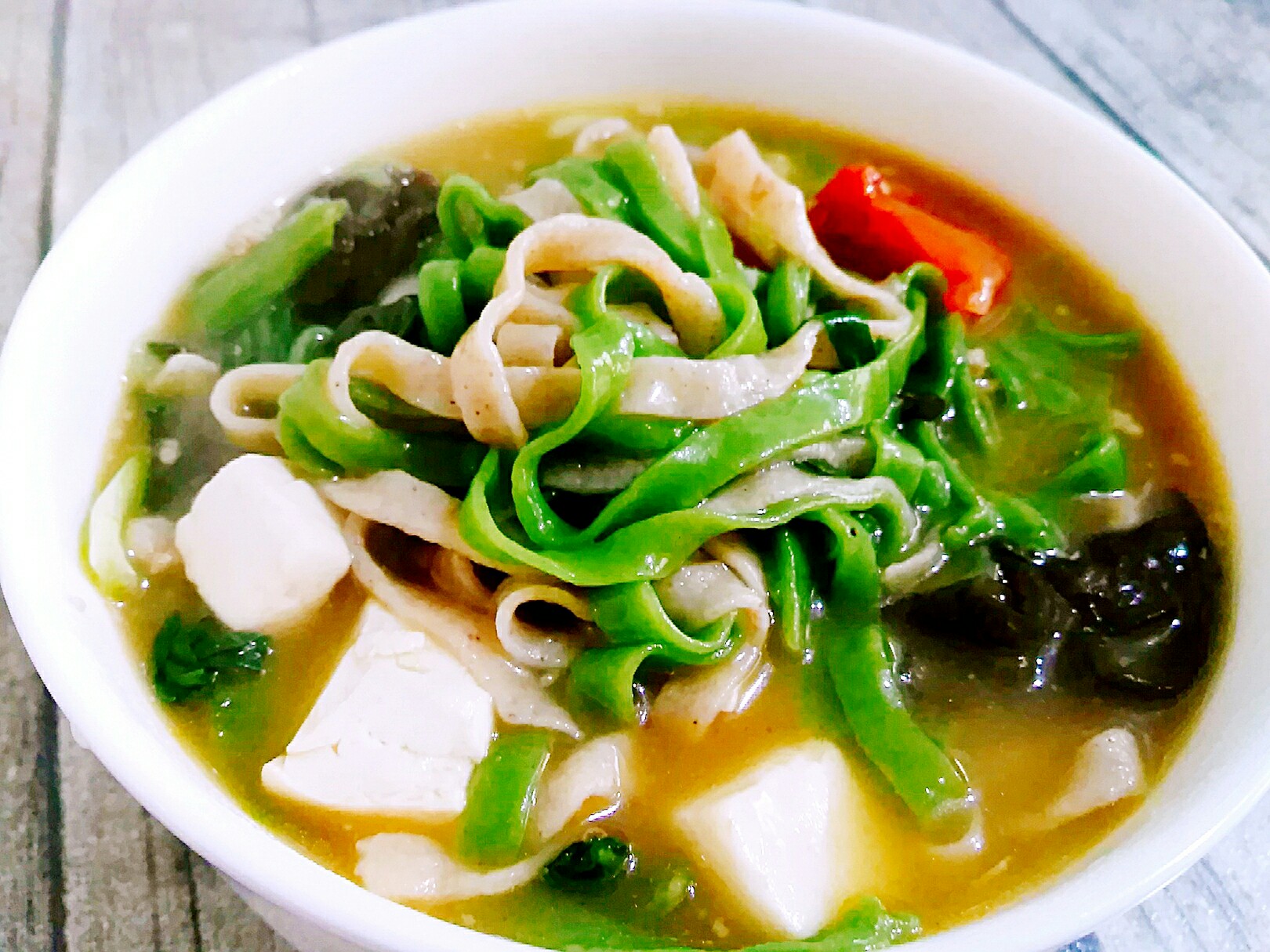 手擀菠菜面条,颜色漂亮又美味