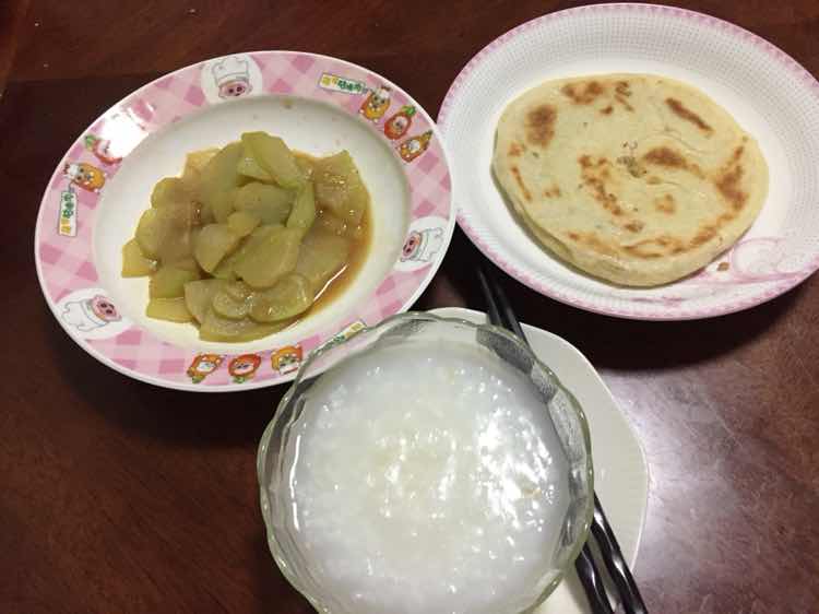 清粥小菜加个又软又有些脆的油饼,晚上一个人的晚餐也满足了