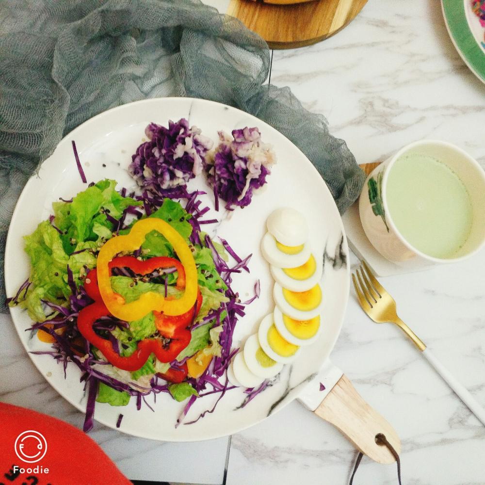 吃好每一餐!戚风蛋糕,水果,抹茶豆浆,彩米丸子,沙拉菜