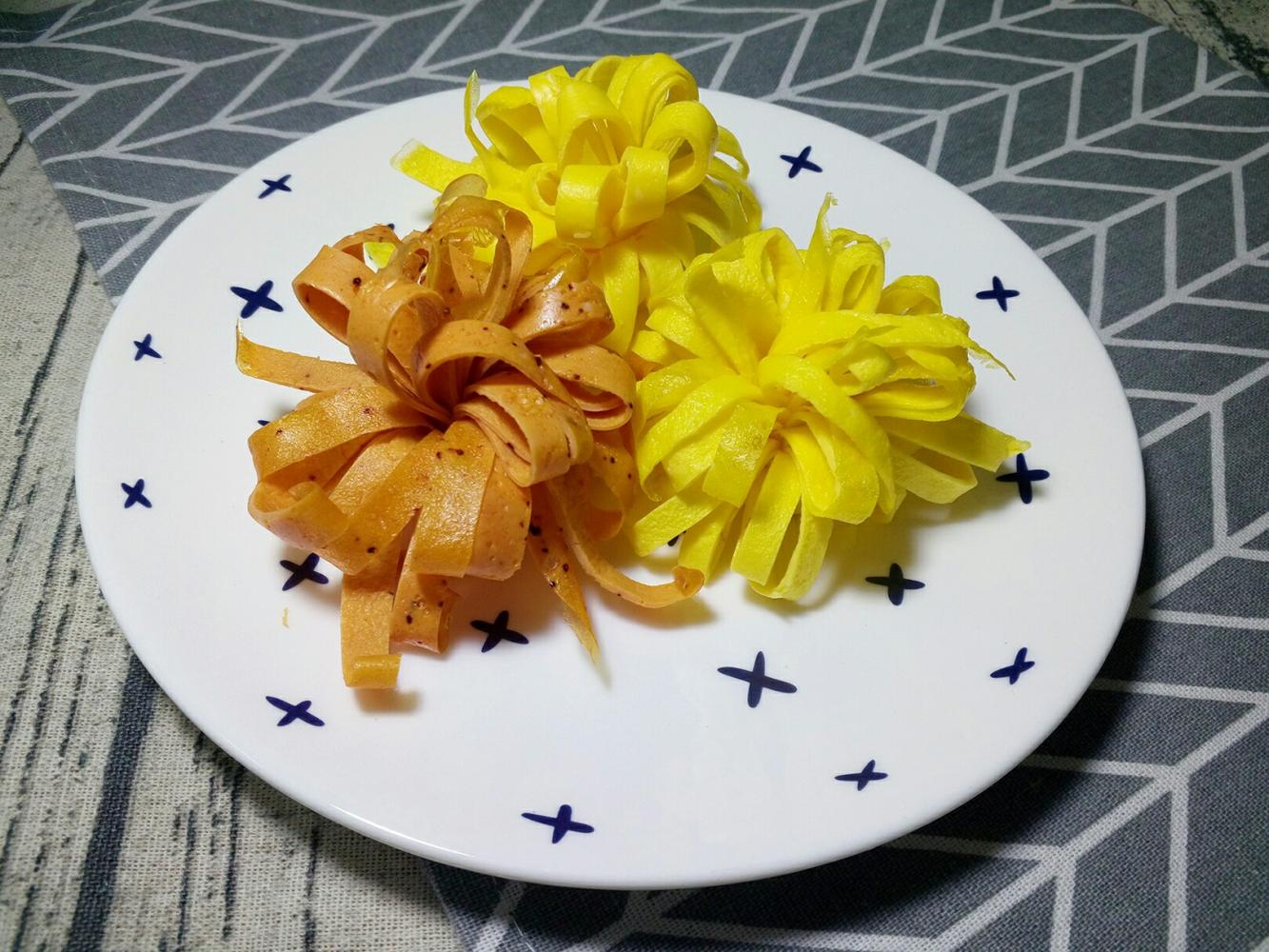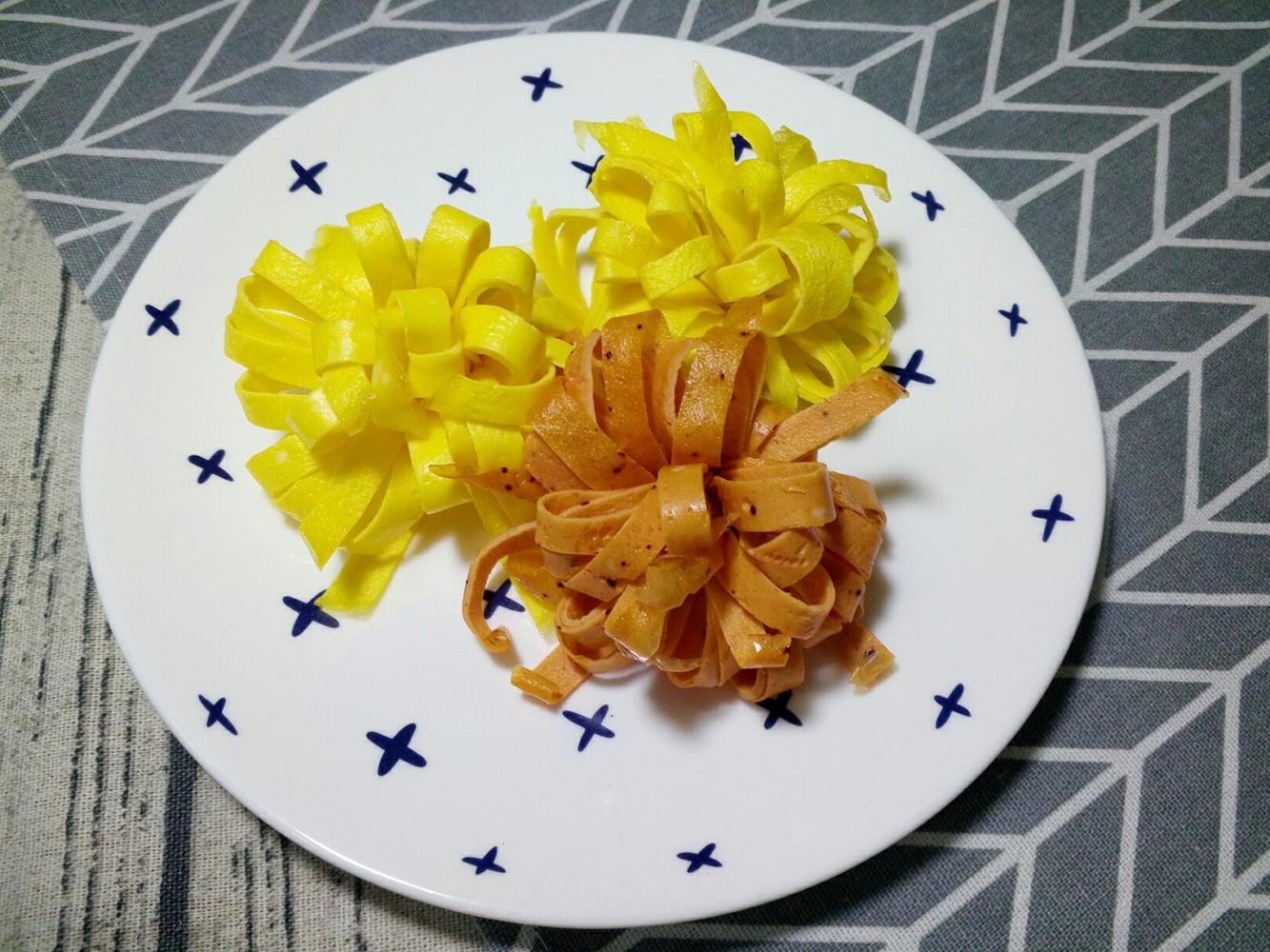 深色的放了红曲粉做的鸡蛋饼。