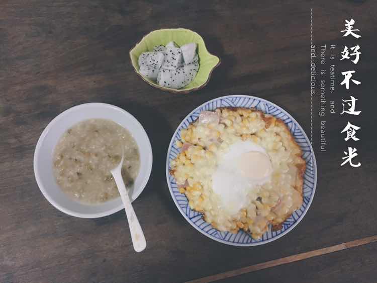 绿豆粥+土豆披萨+火龙果 今天的早餐得到小妞100分评价!!