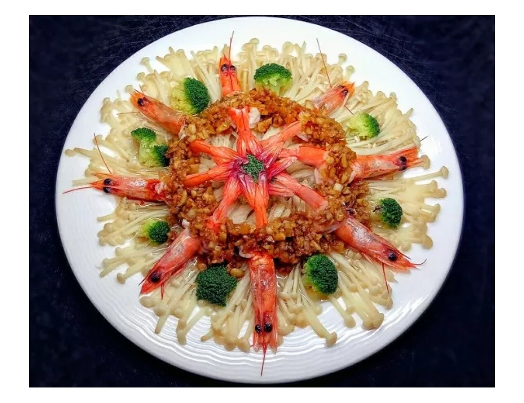 九节虾 金针菇 西兰花