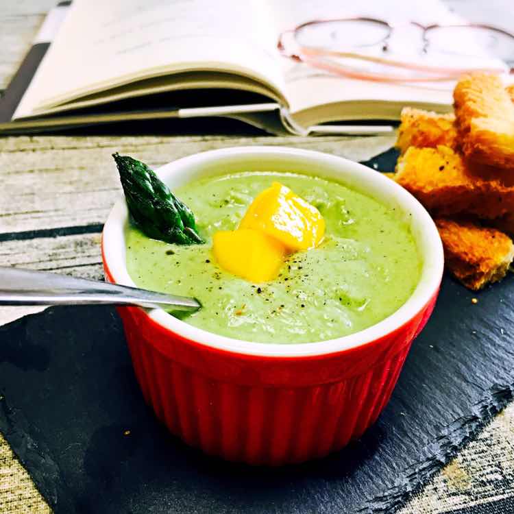 芦笋、牛奶、奶油、黑胡椒、芒果丁诱惑你的味蕾。