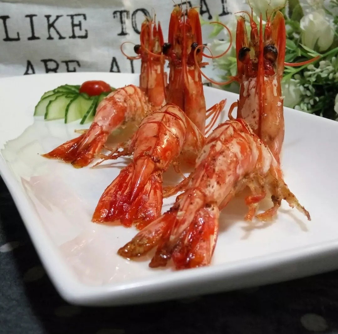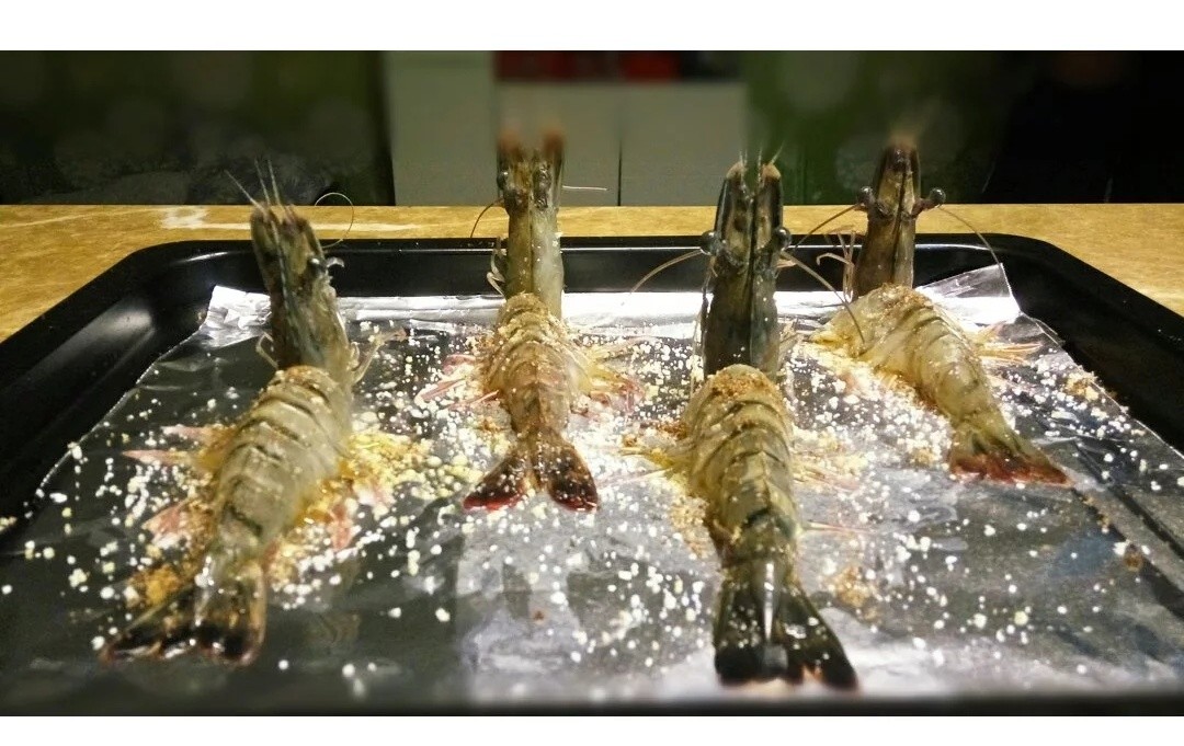 分享我做的蒜盐烤九节虾