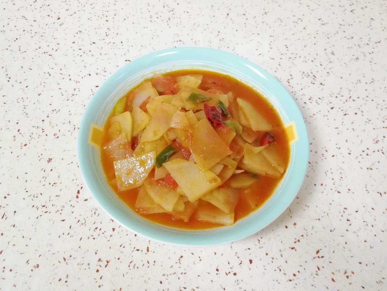 柿子椒炒鸡蛋+番茄土豆片