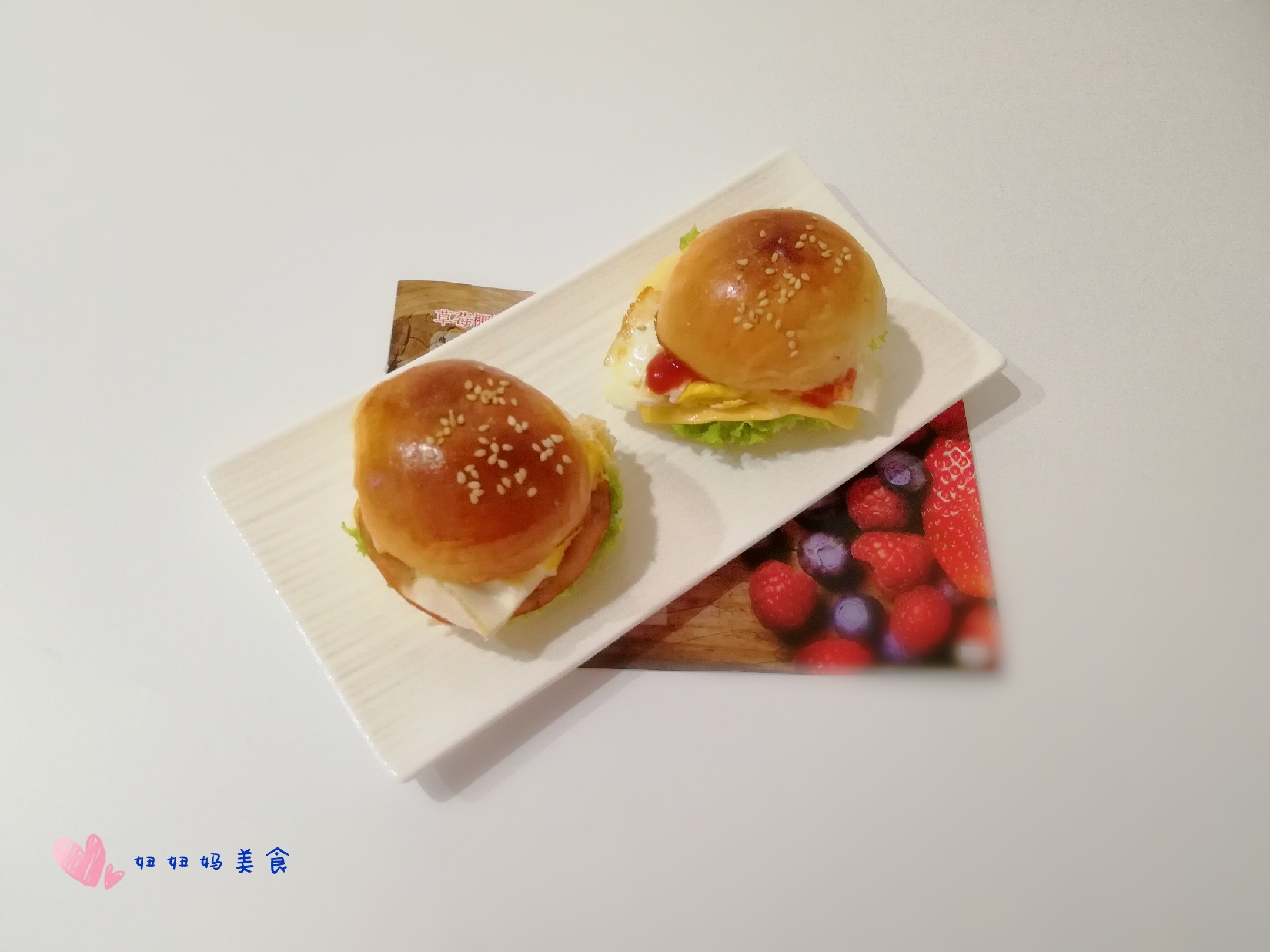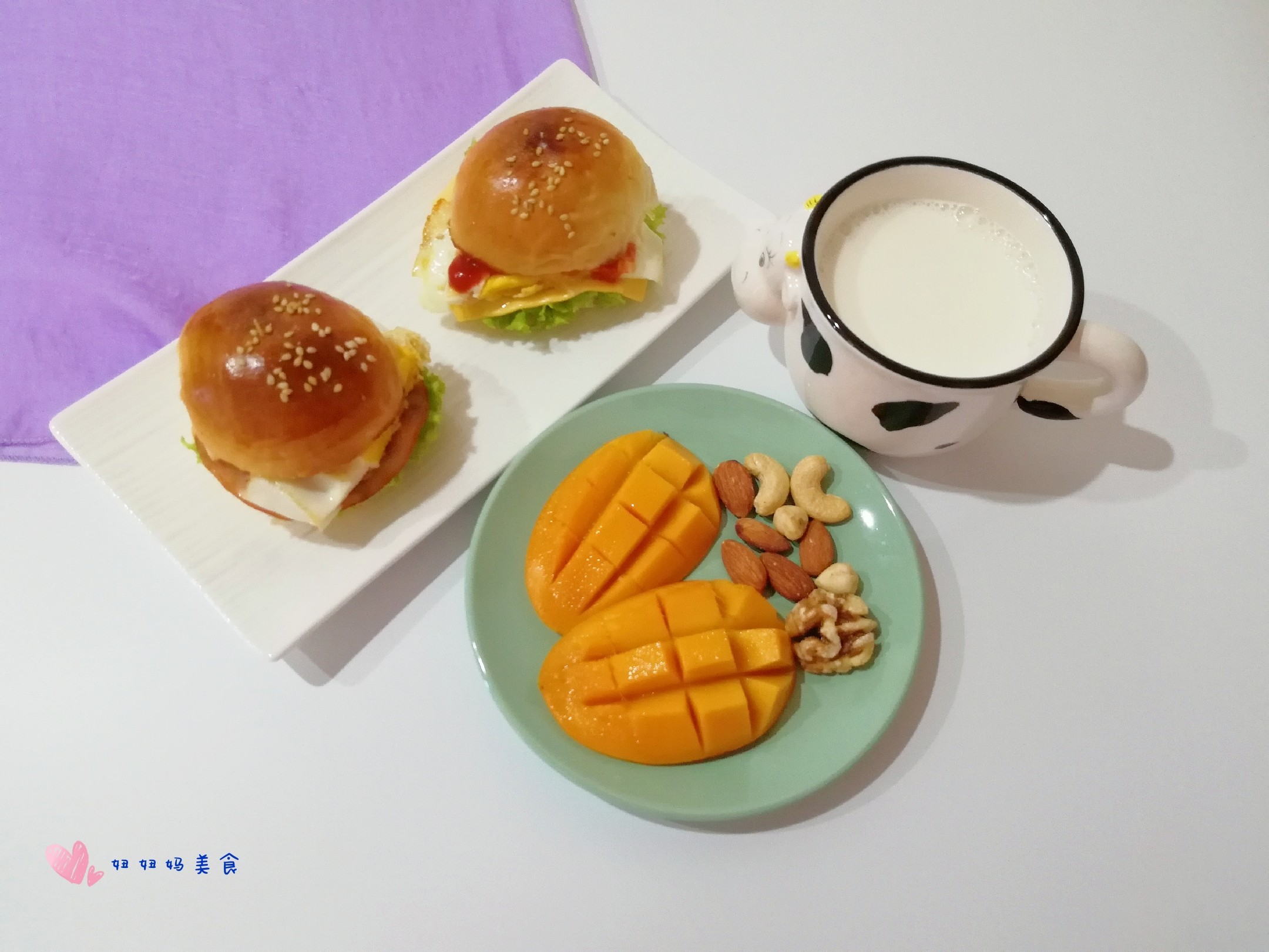 自己做的小餐包,再做成迷你小汉堡,美美哒早餐 迷你小汉堡+牛奶+水果坚果