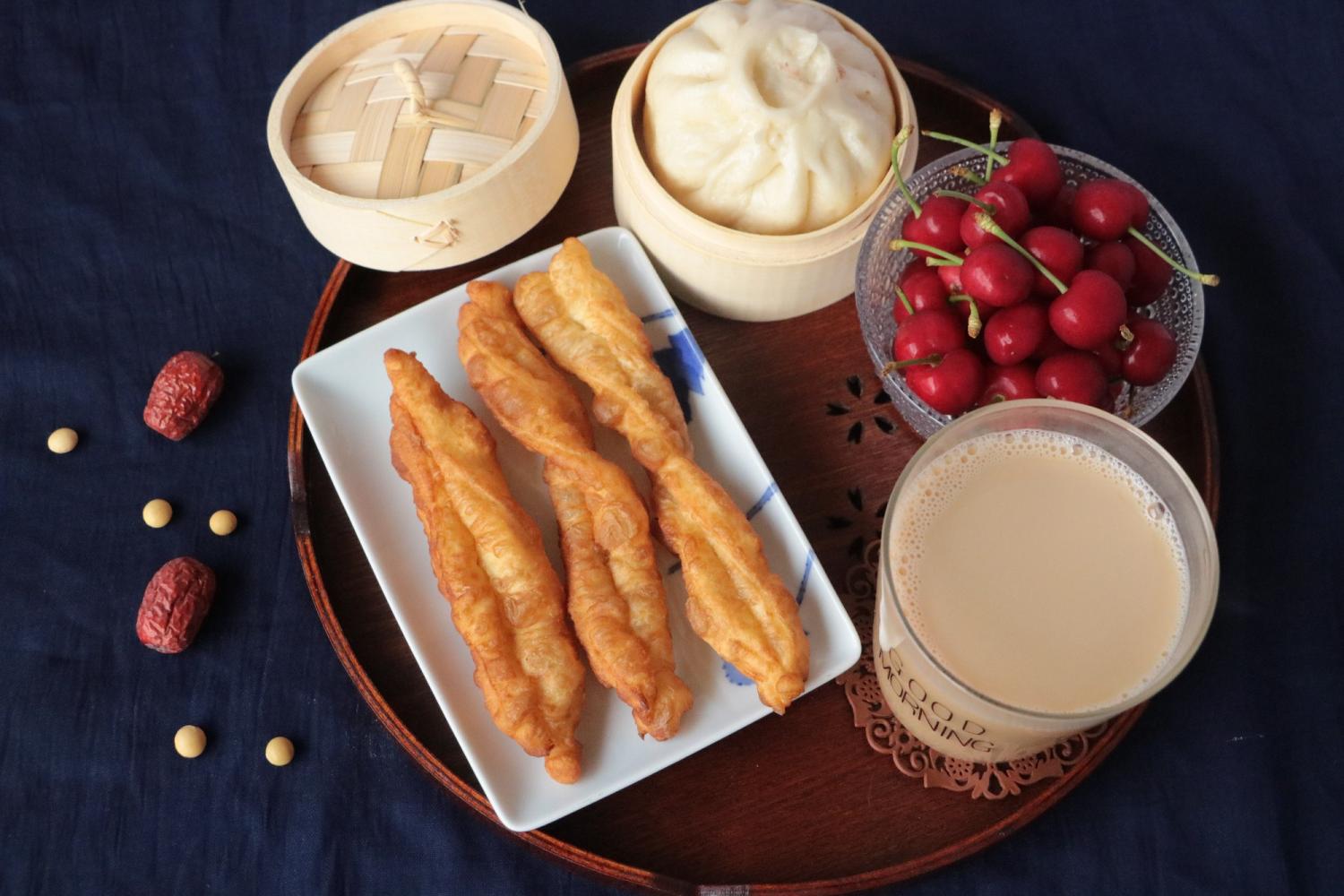 20180513:桂圆红枣豆浆,安心油条,豆沙包,樱桃~
