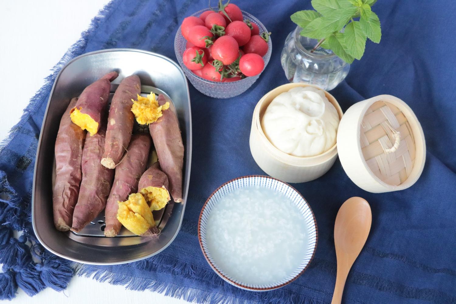 20180515:白粥,豆沙包,烤山芋,小番茄~
