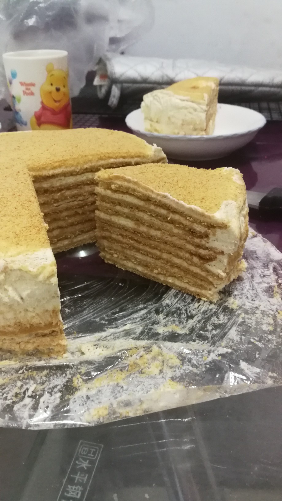 昨晚按老师教的做了这款俄式提拉米苏,今早切开,入口绵软,闺女说很好吃!一点也不腻!第一次参与味游的活动,拍照技术不好,简单传两张。
