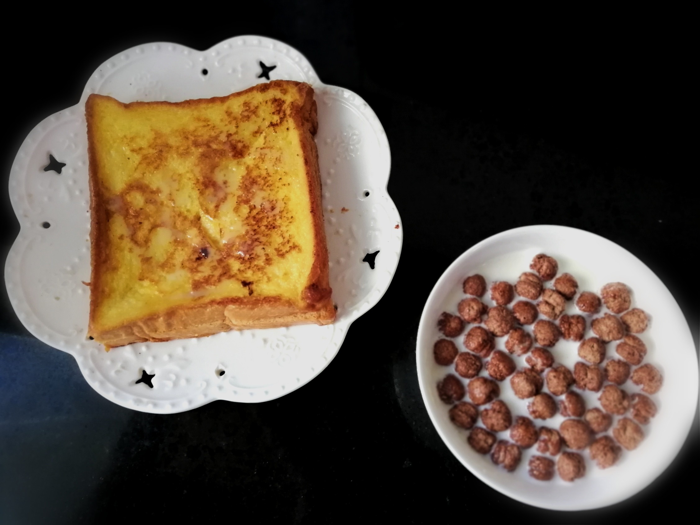 儿时的记忆,最喜爱的早餐,没有之一!一份牛油士多,加上牛奶可可脆,娃的早餐,能量满满,热量也满满的!