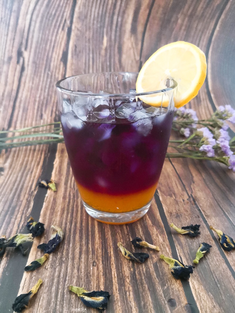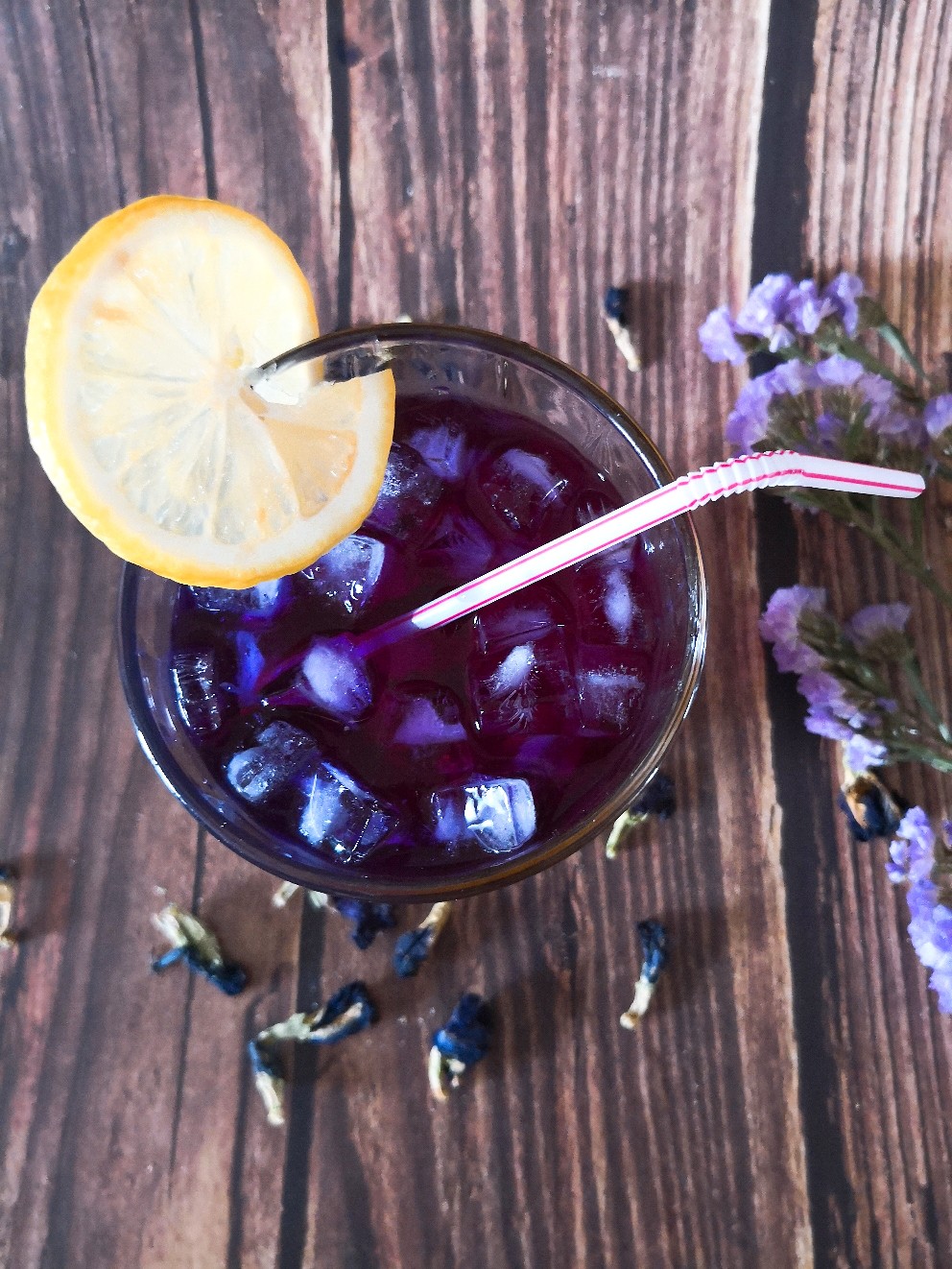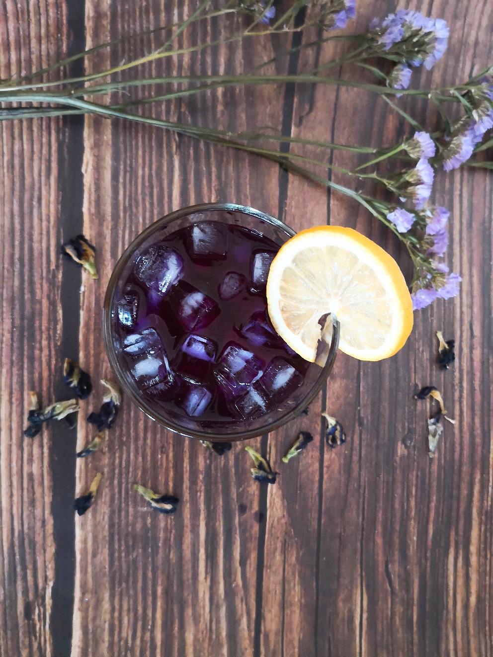 炎热的夏天,来一杯冰镇的蝶豆花饮料,爽