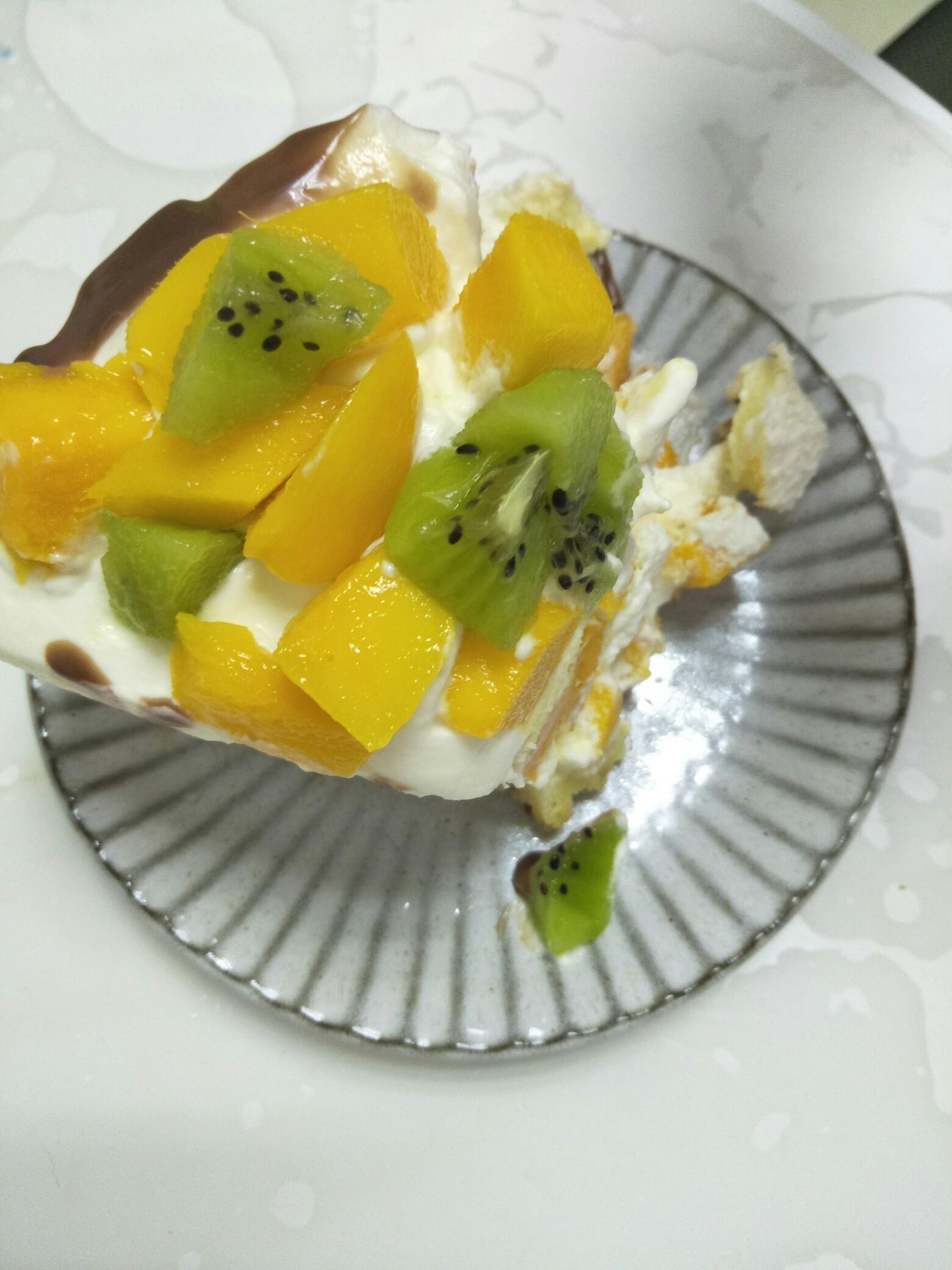 给小孩儿做了一个水果奶油蛋糕 因为抹面手残 临时添加巧克力进行简单淋面