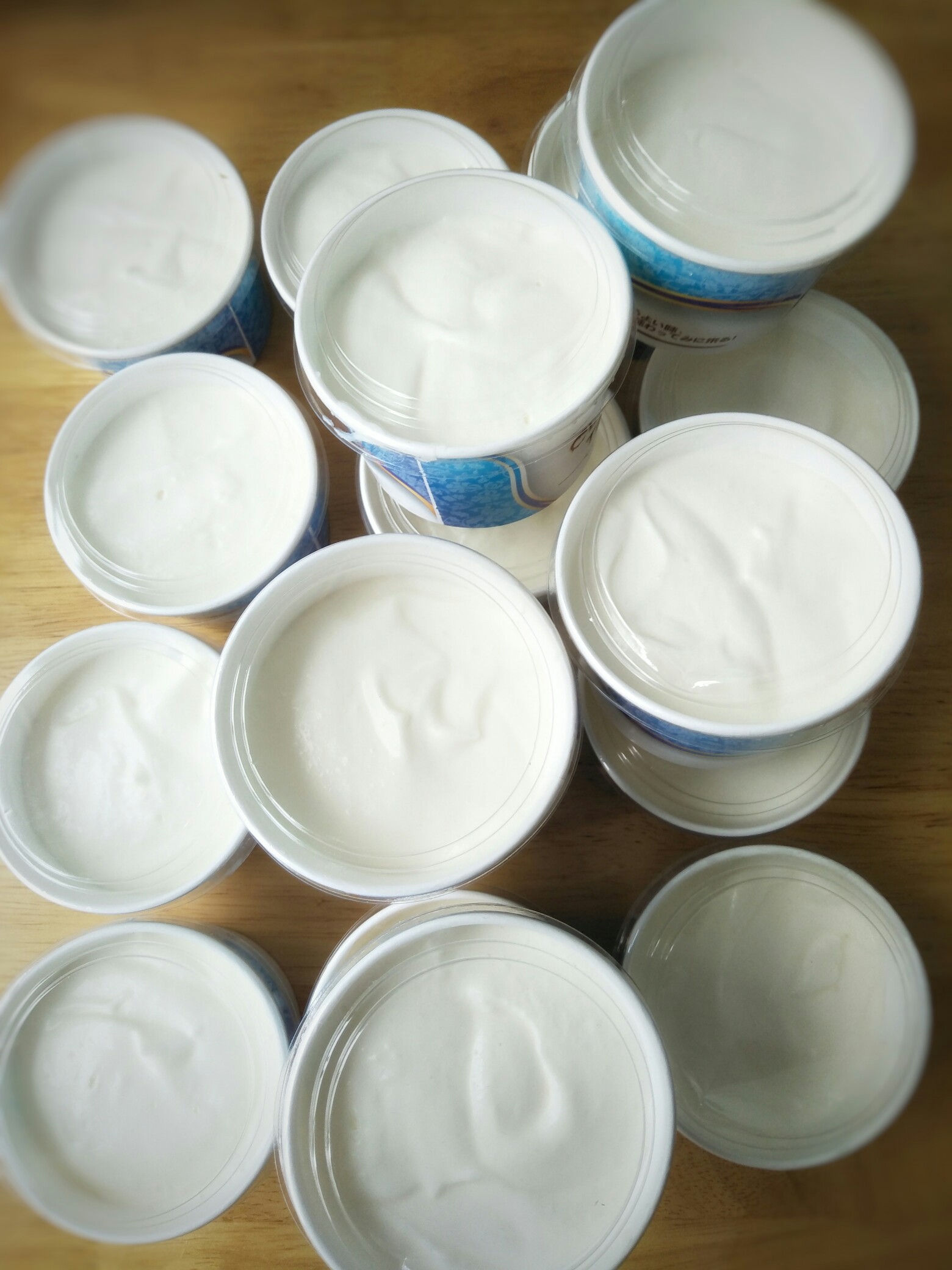 做蛋糕开封剩余的淡奶油,加上自制的浓稠酸奶,加入白糖用打蛋器打至浓稠状态,好吃的酸奶冰淇淋就做好了!#快乐的自制美食##酸奶冰淇淋#