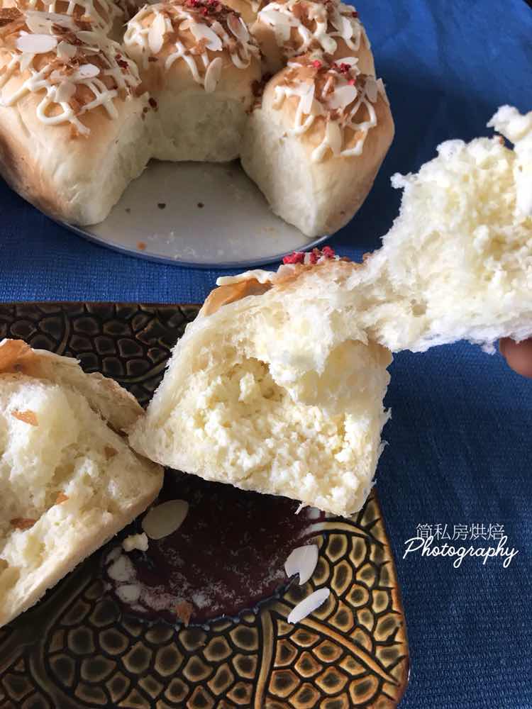 面包材料:高筋面包粉 糖 盐 淡奶油 牛奶 鸡蛋 酵母 黄油