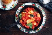 鸡胸 番茄 大蒜 新鲜罗勒 黑、白胡椒粉 盐 葡萄籽油