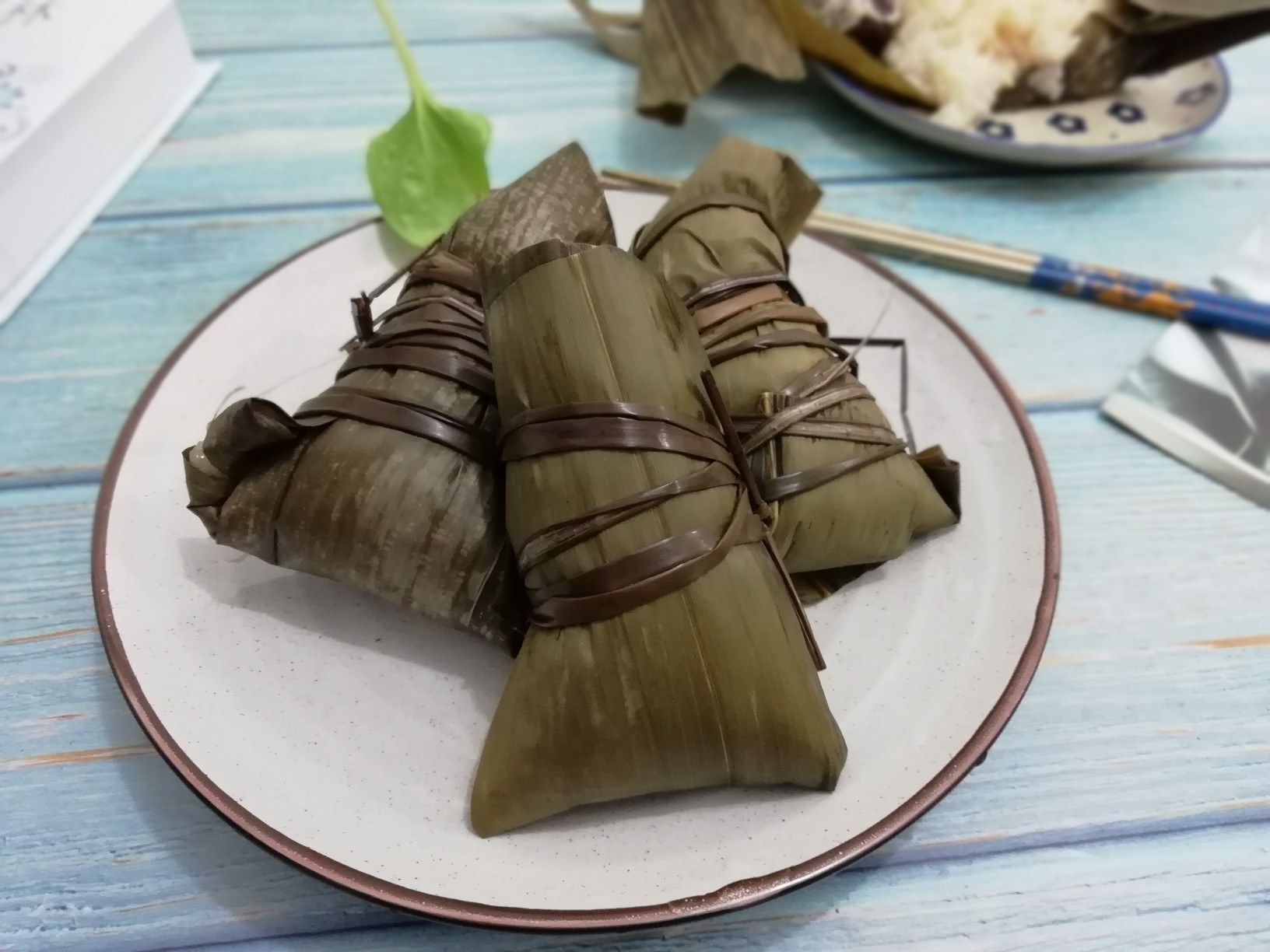 第二张图片是老师交的,第三张图片是我原来的包法,我原来的包法每次煮都会散开,而老师交的包法很好