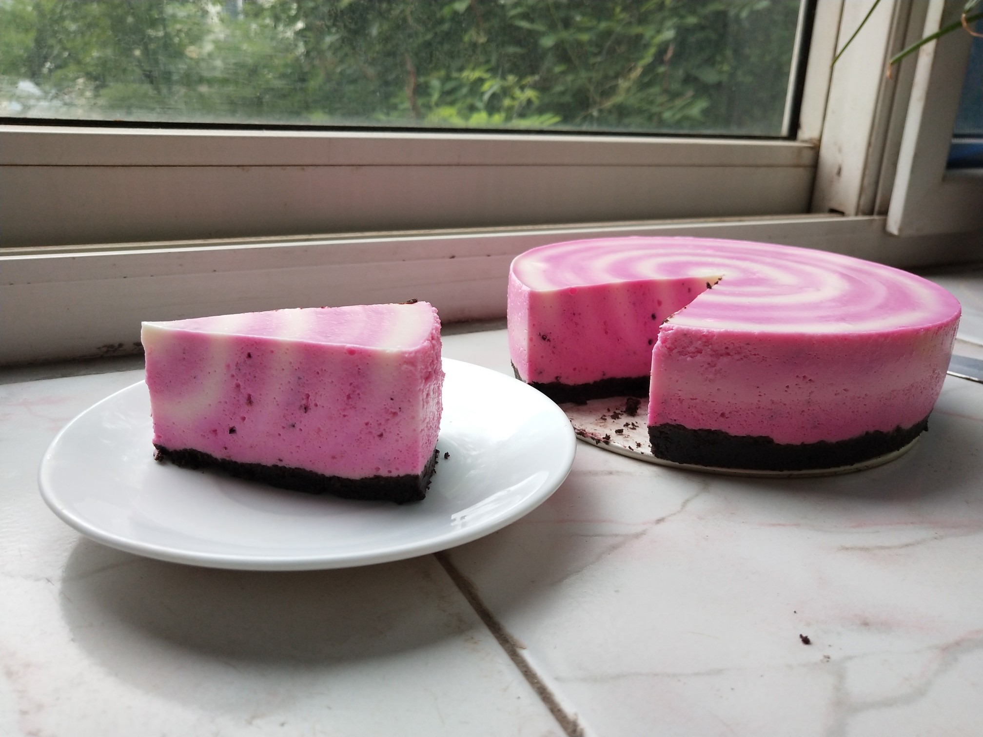 分享我做的大理石花纹蓝莓冻芝士蛋糕