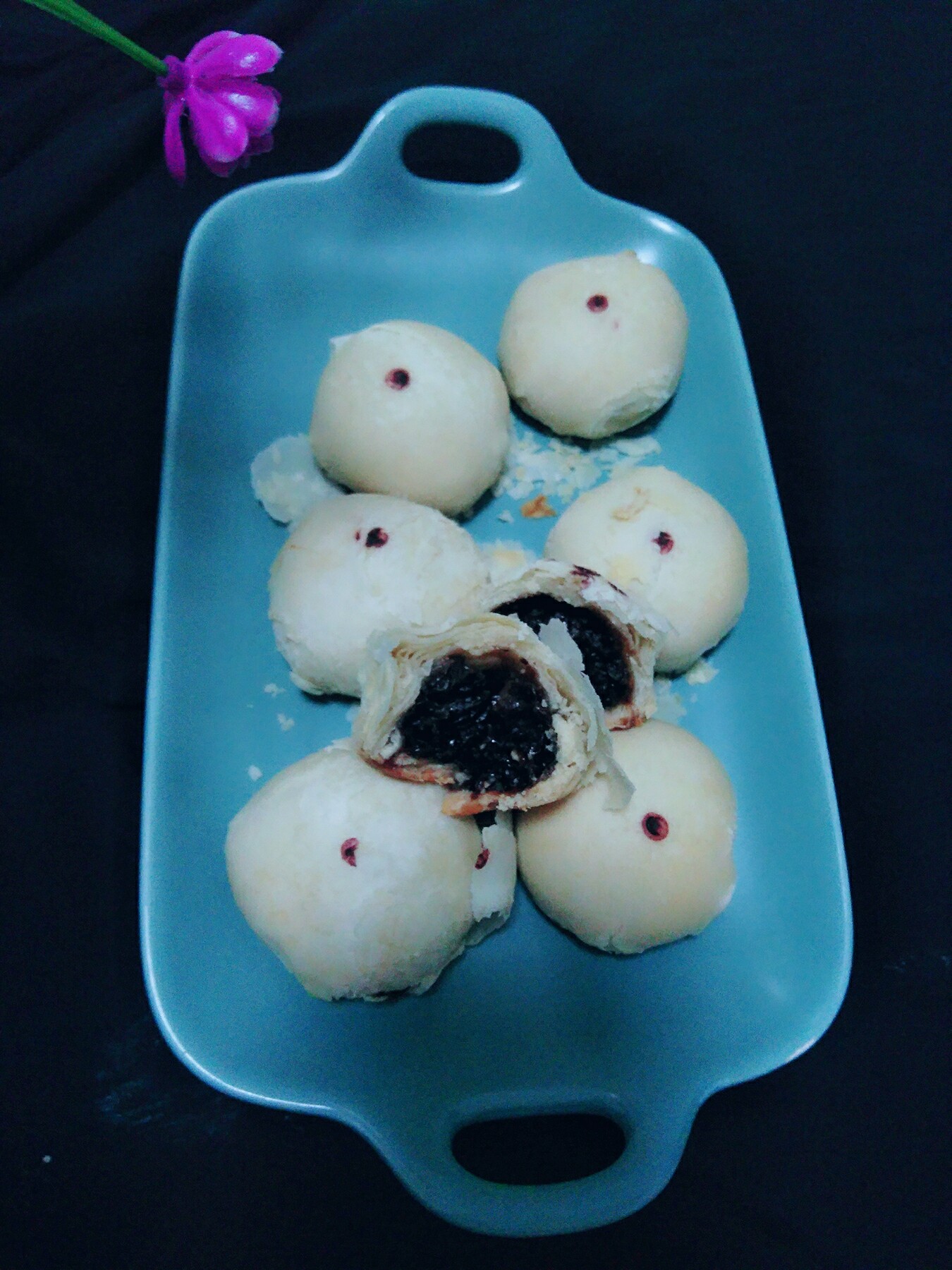 水油皮:中粉 糖 水 玉米油 油酥:中粉 玉米油