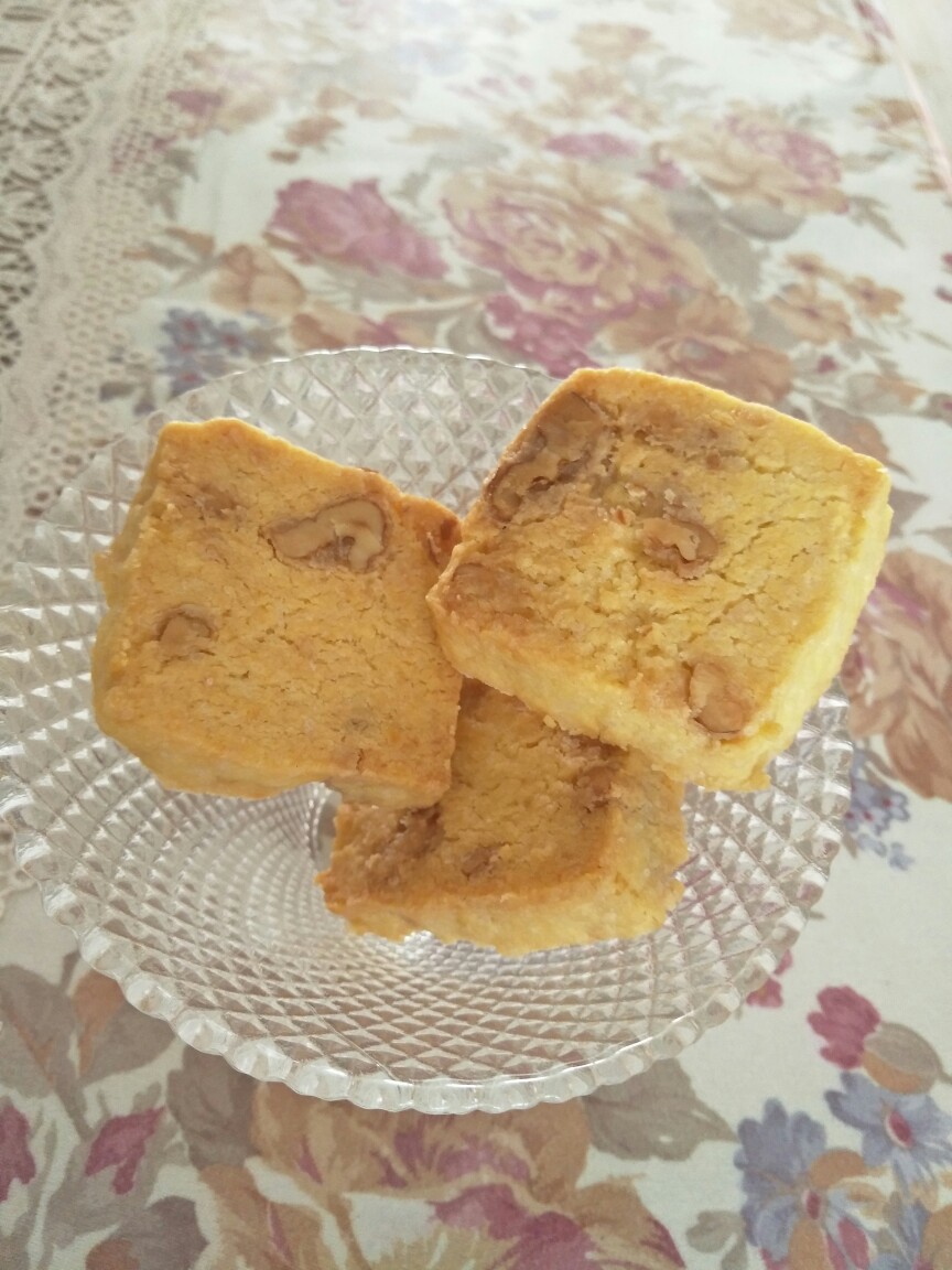 非常酥,比曲奇还好吃,因为加了核桃,感谢老师的方子。