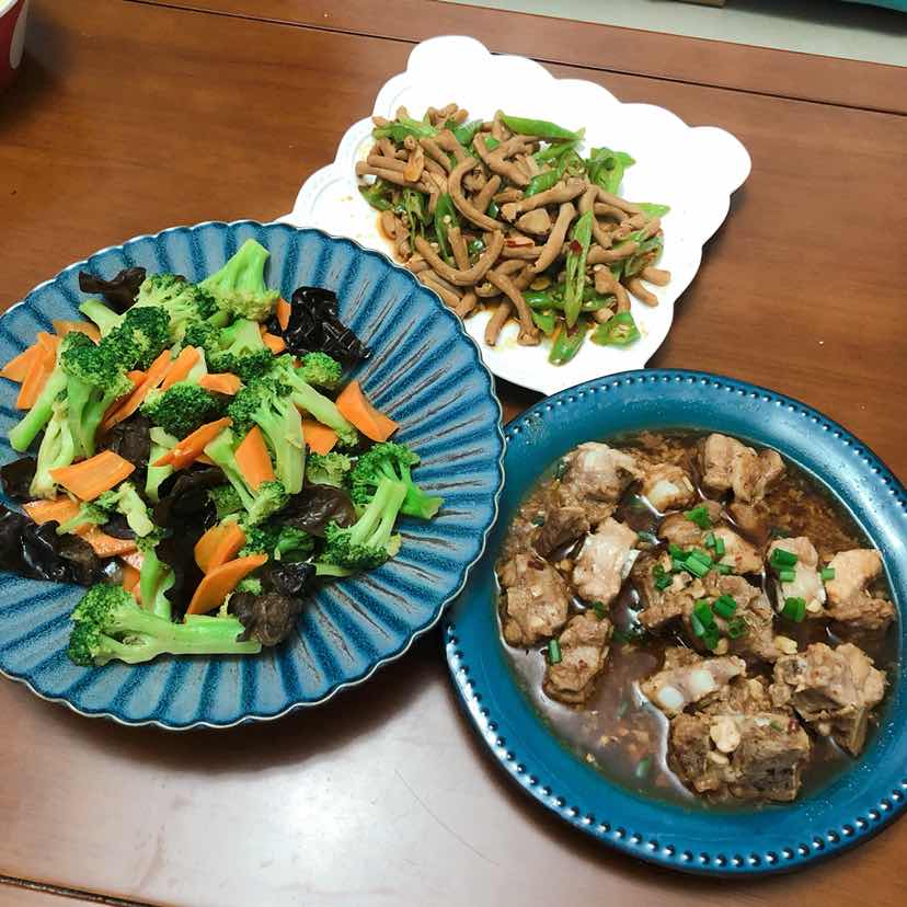 晚餐 西兰花素炒 沙茶蒸排骨 爆炒鸭肠
