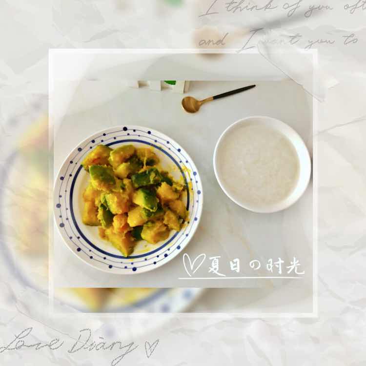 简简单单一碗粥,一盘南瓜,老妈自己种的南瓜超好吃