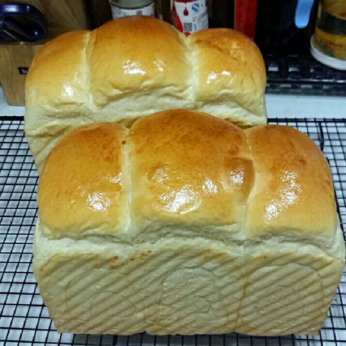 上周六和今天做的。加了老面,面包很软,味道不错。做三明治最合适。