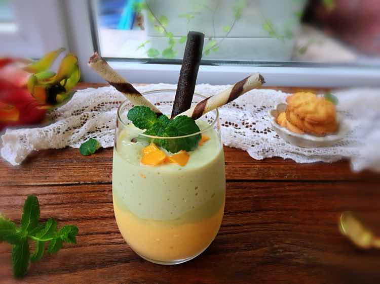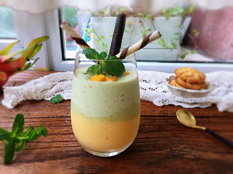 芒果与牛油果的双色美味奶昔,营养与口感的双重享受