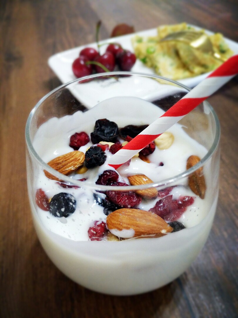 酸奶坚果,燕麦鸡蛋饼,樱桃!