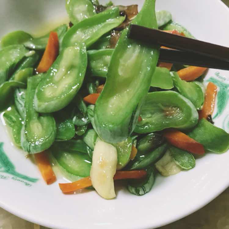 蛇瓜 口感脆脆的 如果没有见过它的样子 如果不是对某生物“心有余悸” 我想会给这道菜➕很多分