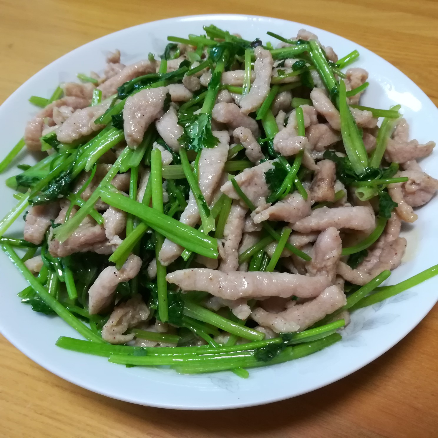 用芫荽和猪里脊肉炒的这道爽口菜品