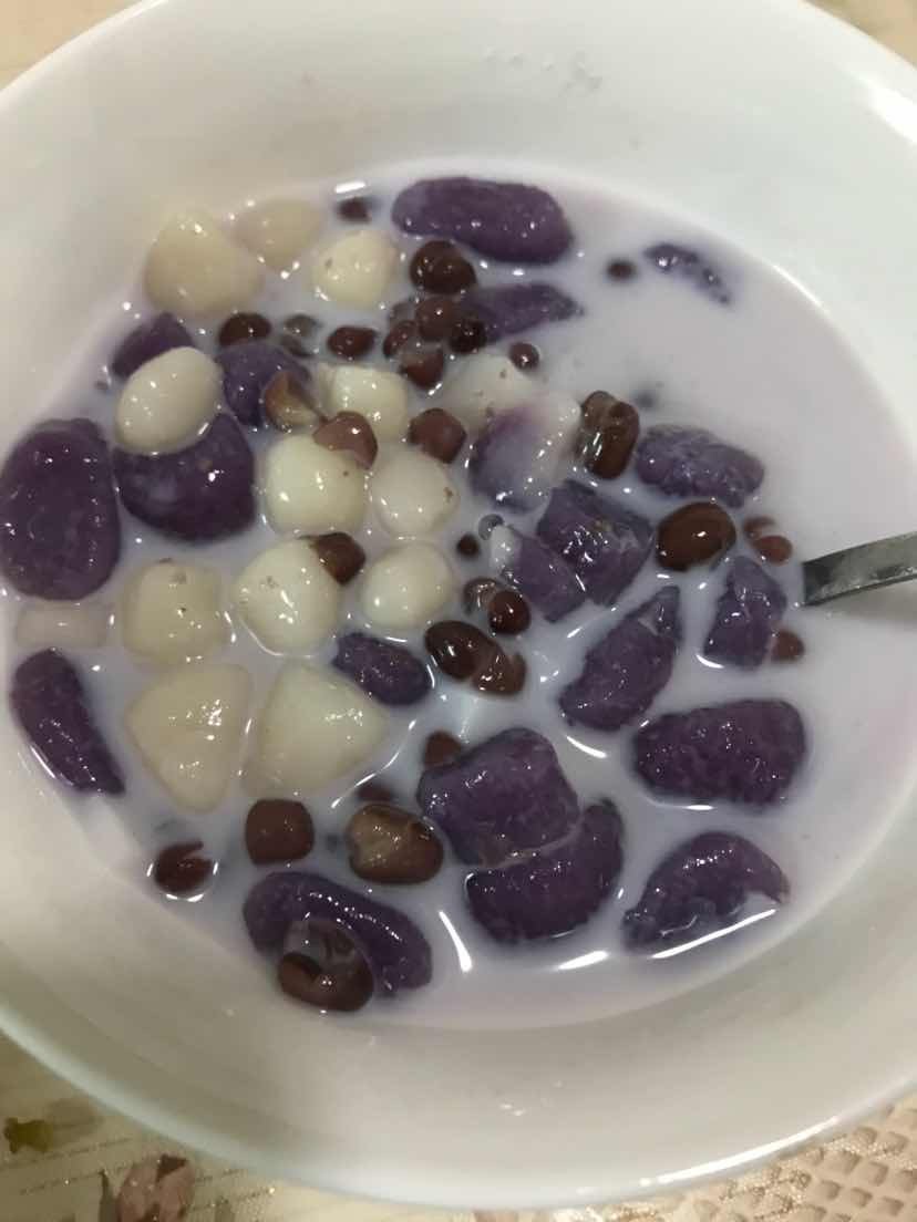 南瓜味芋圆:木薯粉 南瓜泥 细砂糖 100度开水 山药味芋圆:木薯粉 铁棍山药 细砂糖 100度开水 紫薯味芋圆:木薯粉 紫薯泥 细砂糖 100度开水 椰浆芒果味汤底:芒果果肉 纯牛奶 椰浆 细砂糖 烧仙草牛奶汤底:纯牛奶