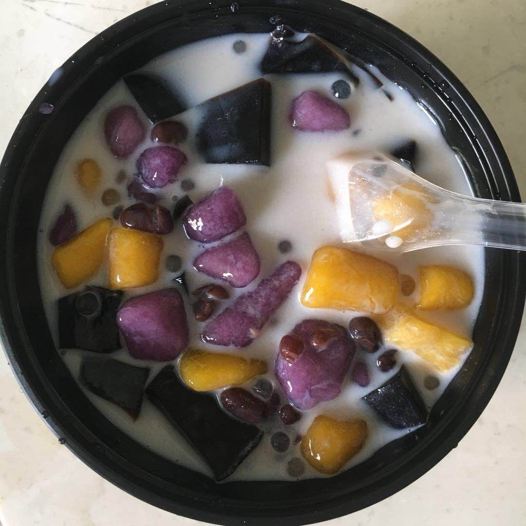 南瓜味芋圆:木薯粉 南瓜泥 细砂糖 100度开水 山药味芋圆:木薯粉 铁棍山药 细砂糖 100度开水 紫薯味芋圆:木薯粉 紫薯泥 细砂糖 100度开水 椰浆芒果味汤底:芒果果肉 纯牛奶 椰浆 细砂糖 烧仙草牛奶汤底:纯牛奶