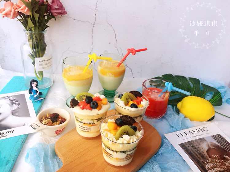 大热天就想吃点凉快的[偷笑]奶油水果木糠杯